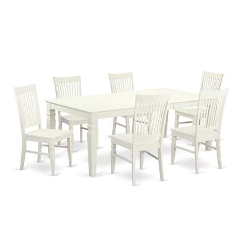LGWE7-E7P-T 7-Piece Dining Set with Rectangular Table, Butterfly Leaf & Six Chairs, 42x84 inch, in Fresh Linen Tone