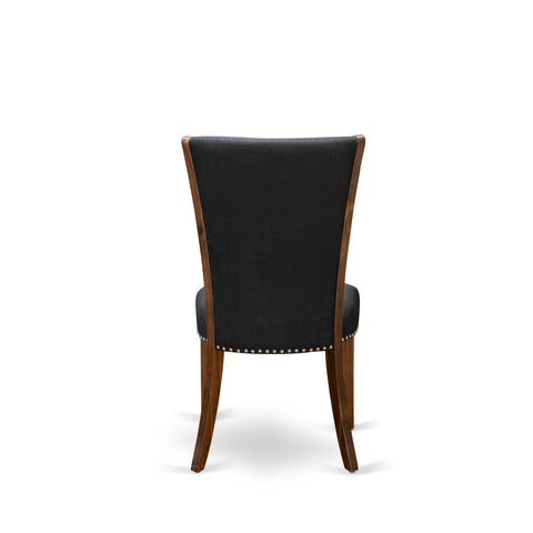 LMVE9-34-UN 9-Piece Rectangular Rustic Dining Table Set with 8 Sleek Black Linen Parsons Chairs, Walnut