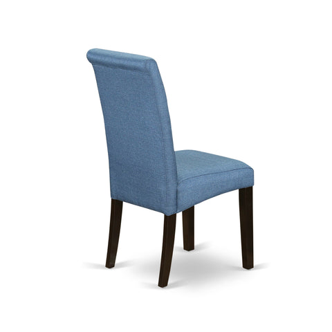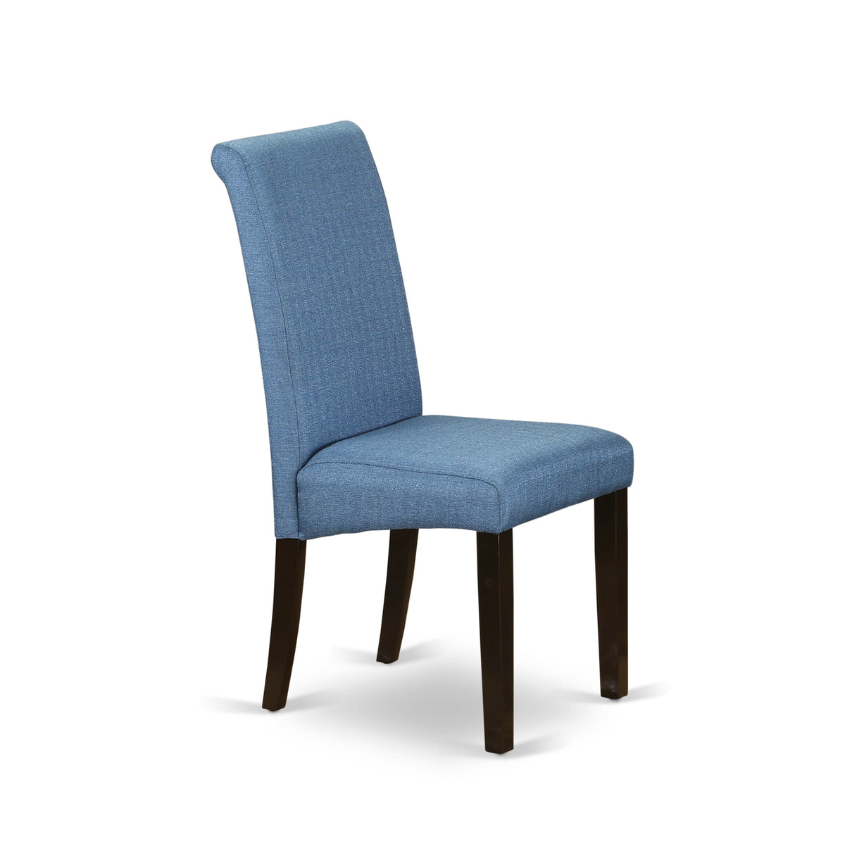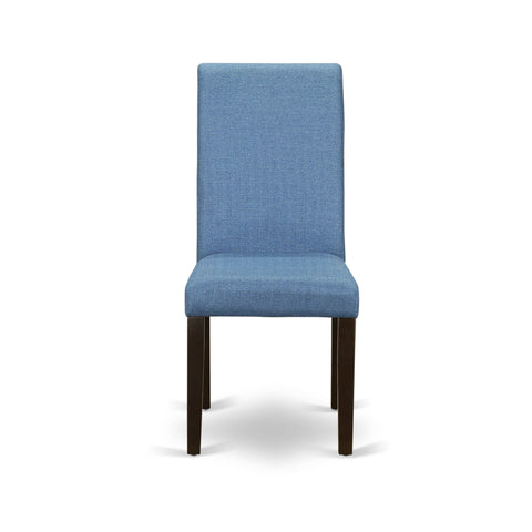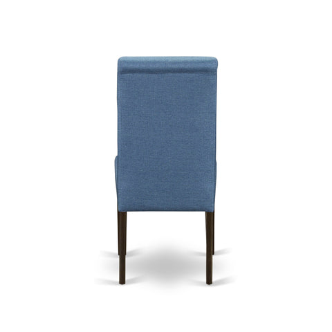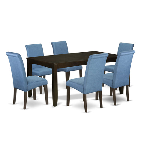 LYBA7-ZUZ-5Q Transformable Dining Ensemble with Expansive Table & Six Elegant Blue Chairs