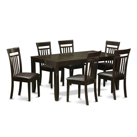 LYCA7-L74-99 7-Piece Dining Suite with Expandable Rectangular Table and 6 Leather-style Chairs in Rich Cappuccino Finish