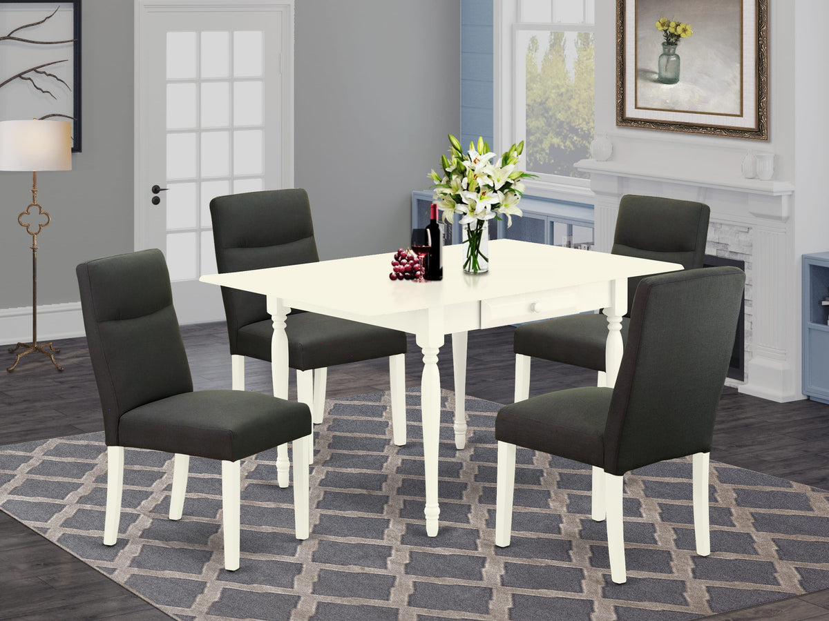MZBE5-5DX-O1 Elegant 5-Piece Dining Set with Drop Leaf Table and Linen Upholstered Chairs for Four, 36x54 in Soft White Finish