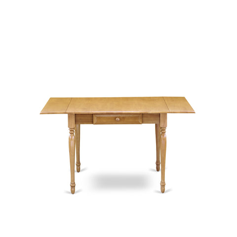 Furnish your kitchen area with this fashionable MZDL5-XX2-6 kitchen set to acquire an amazing and fancy appearance. Constructed in the transitional style for your kitchen area, the dining set will be a pleasant area for your loved ones to gather during meals and social activities. The convenient 5 piece dining set contains a rectangle table and four wooden dining chairs. Manufactured from Asian tropical hardwood recognized as rubberwood, the small dining table finished in an oak colorhas smooth edges and fashioned round legs for a fancy style. The wood table integrates two 9-inch drop down leaves that provides additional space for extra food trays and drinks. The 2 drawers of the dining table amplify storage in the kitchen or dining room to help keep you organized. The wood table can be assembled without any extra tools and aim to last for long. The simple yet useful wood dining chair finished in gorgeous oak color offers a familiar look in your dinette space. The dining room chairs come with a solid wood seats to fit personal preference and simple design. The dining chairs feature curved back legs with slat back design. Made up of hardwood, the dining chair is stable and offers a sturdy finish. The frame of the kitchen chairs is engineered to offer a great amount of comfort to your spine and thus reduce the chances of back pain. The matching color of the wood dining chair with the dinette table brings a good contrast in the kitchen area. The standard shape, size and design make the dining area significantly attractive. This contemporary, budget-friendly, durable and comfortable dining room table set can be a good choice if you are looking for a great dining time experience with your family or friends.