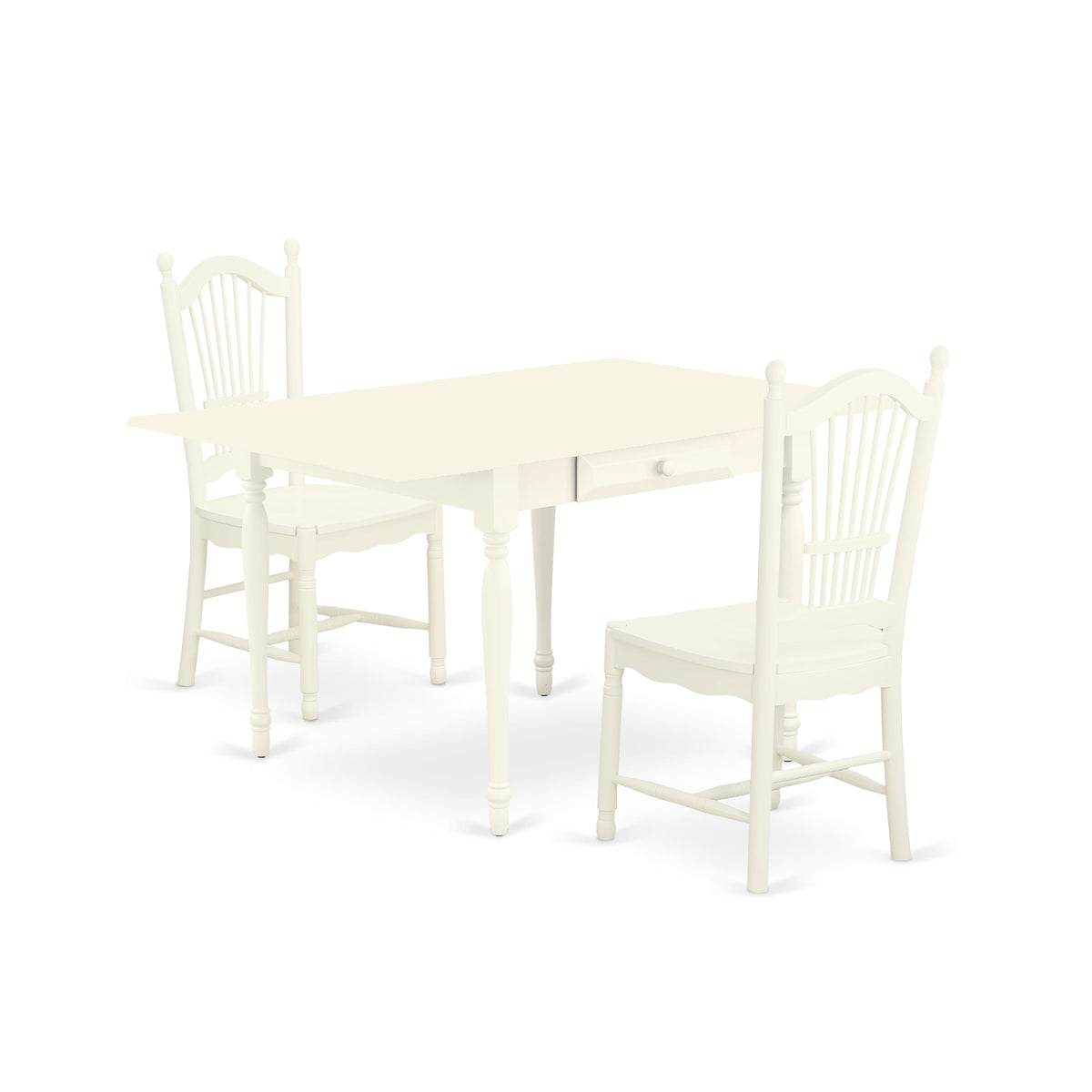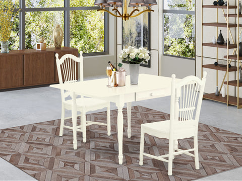 Decor your kitchen area with this contemporary MZDO3-Q7N-C dining table set to get a new and classy look. These exclusive kitchen table sets provide a sophisticated look to enhance any sort of dining area or residence's kitchen zone for any functions. The comfy 3 pieces kitchen table sets contains a dining table and two dining chairs. Manufactured from Asian tropical hardwood also known as rubberwood, the dining table finished in Linen White has smooth edges and designed rounded legs for an advanced style. The rectangular table integrates two 9-inch drop down leaves that provides additional space for extra food trays and drinks. The 2 drawers of the dining table provide additional storage to help keep you organized. The easy to assemble rectangular table ensures comfort and long-lasting use. This distinctive Dover dining room chairs finished in Linen White offers an exquisite and elegant look. The modern dining chairs made of solid wood to suit personal preference and optimum design. The gorgeous slat back design of the dining room chair brings the elegance in the kitchen space. The frame of the dining room chair is engineered to offer a great amount of comfort to your spine and thus reduce the chances of back pain. The standard shape and size make the dining area significantly attractive. This contemporary, budget-friendly, durable and enjoyable dining table set for 2 can be a good choice if you are looking for a great dining time experience with family and friends.