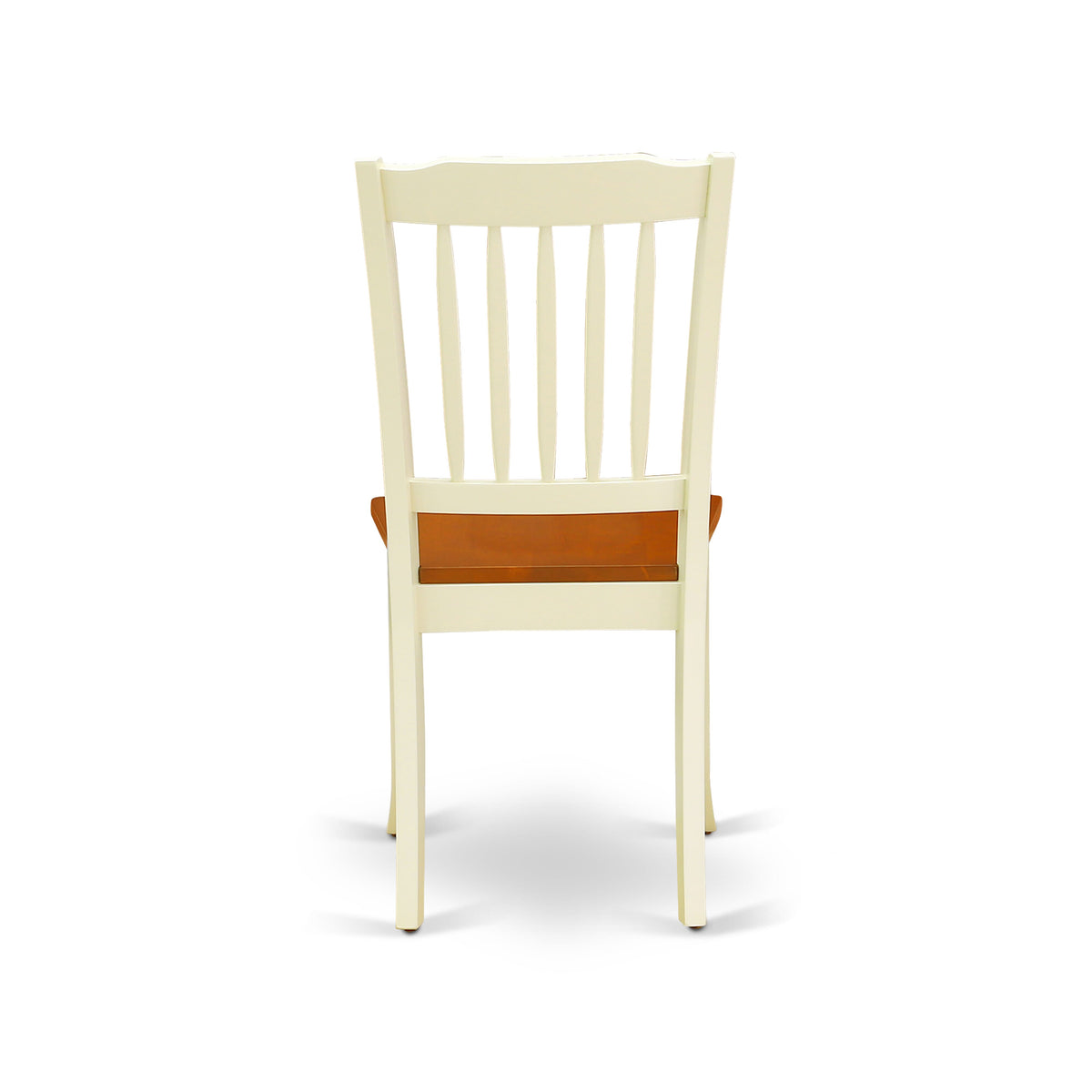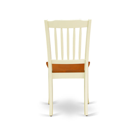 If you are looking for the fantastic set of table and chairs to decor your dining room or kitchen space, this gorgeous NADA7-B2L-6 dining set is your desired one. The kitchen dinette table with built-in self-storage butterfly leaf which fits 4 to 8 persons. Dazzling solid wood table top with well-built carved pedestal support. Beveled rectangular shape to make welcoming kitchen space ambiance and finished in rich Buttermilk and Cherry, the dining room table can be acquired with hardwood or padded seat chairs. In-built self-storage butterfly leaf can be folded subtly under the tabletop when not being used and provides the greatest in flexibility for individuals who enjoy to set up modest, passionate dinners as well as full-out family affairs. The eye-catching Danbury dining room chair finished in elegant Buttermilk and Cherry offers a modern look in your dinette space. These Kitchen dining chairs come with a solid wood seat to fit personal preference and perfect design. The Stylish dining chair features curved front legs. The 7 vertical slats give any dining area a touch of class and sophistication. The frame of the chairs are engineered to offer a great amount of comfort to your spine and thus reduce the chances of back pain. The matching color of the chair with the table brings a good contrast in the kitchen area. The standard shape, size and design makes the dining area significantly attractive.