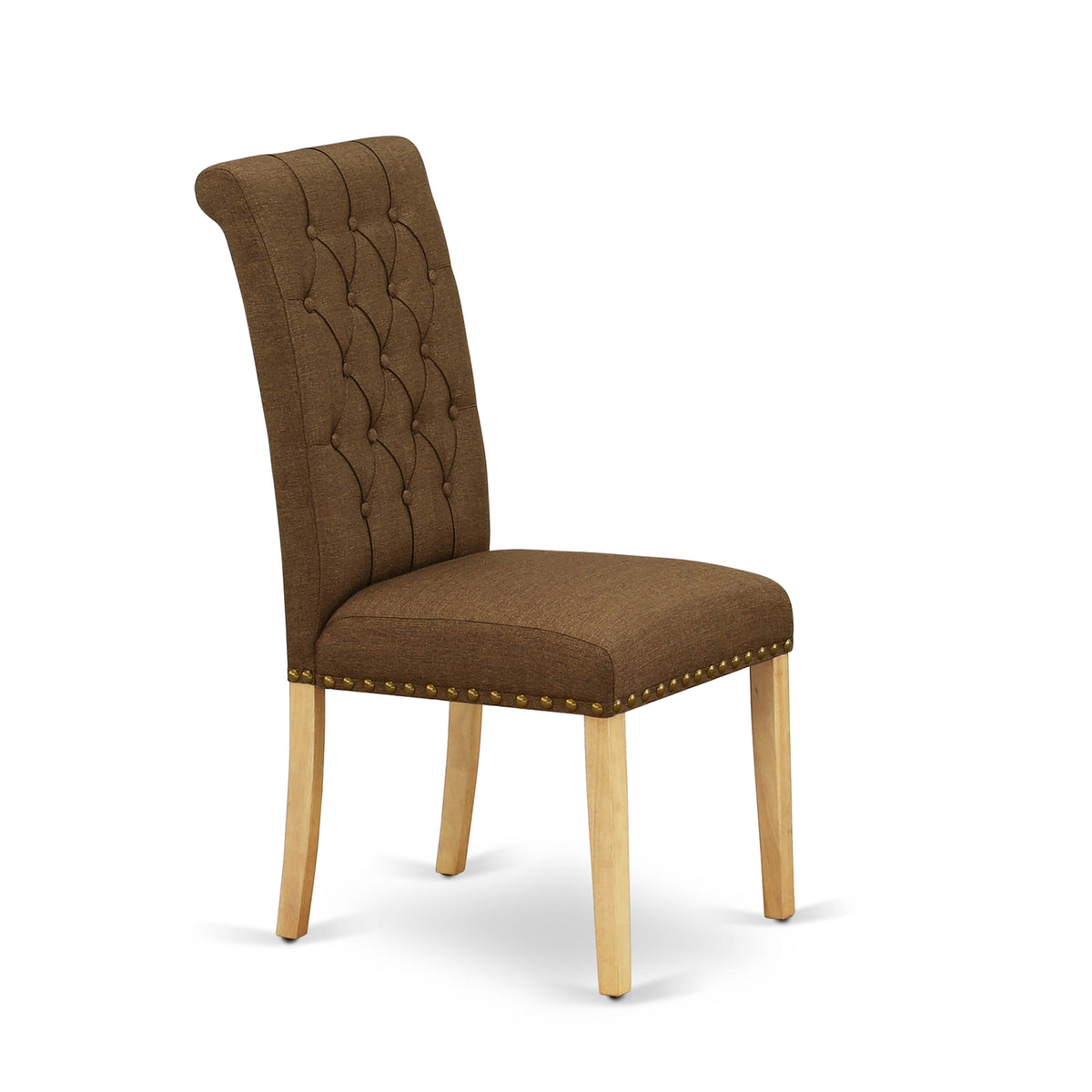 NDBR3-0TB-5C Versatile 3-Piece Oak Dining Set with Dropleaf Rectangle Table & Brown Fabric Upholstered Chairs
