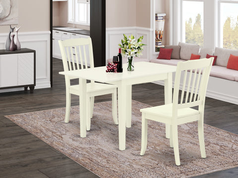 NDDA3-53U-1 3-Piece Linen White Dining Set with Rectangle Dropleaf Table & 2 Chairs, 30x48 Inch