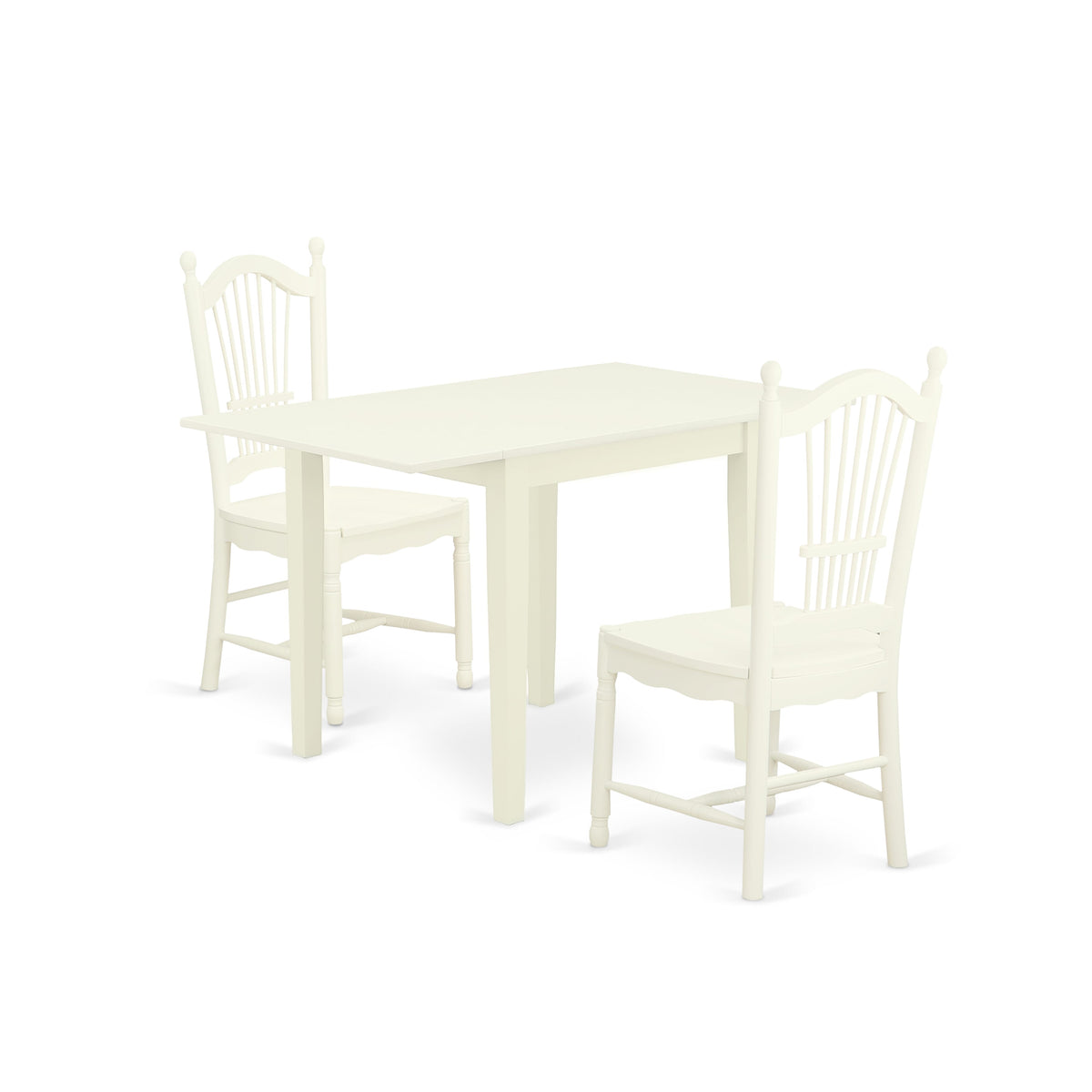 NDDO3-OTZ-U Versatile 3-Piece Dropleaf Dining Set Chic White Rectangle Table and Pair of Upholstered Chairs