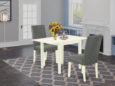 Bring a classy beauty to your dining room with our 3-piece Dining Room Table Set. You will get two great parson-dining chairs and a wonderful modern dining table in this impressive 3 piece Dinette set Leading-edge style of these parson chairs and dining table will increase the charm of any dining area. Comfortable Grey Linen Fabric back and the seat of these dining room chairs will give amazing support to your back and a fantastic relaxing experience. The structure of these creative parson dining chairs and 2-drop leaf dining table is built from Top Quality Asian Solid wood (Rubber Wood) which delivers excellent robustness and stability to these parson chairs and breakfast table. Gentle and comfortable foam padded seat and back of these wonderful kitchen chairs are wrapped in High-Quality Grey Linen Fabric, which gives an amazing glance and comfortable sitting experience. Exclusive durable wooden structure, nice linen fabric seat, and back, dependable dinner table deliver modern appearance to your dining area, perfect stableness to these amazing parson dining chairs and modern dining table, and relaxing support to your back. Thanks to the amazingly ideal dimensions, this wooden dining table set is a breeze to carry, clean, assemble and change its places, Classic designs of this unique wooden table suits nicely with any decoration and a delicate cushion upholstered seat and back in smooth Linen Fabric of these chairs for dining room will keep users comfortable.