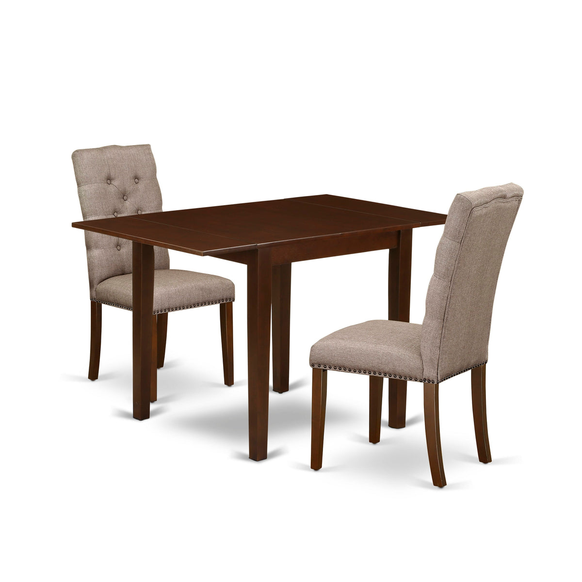 East West Furniture 3-Pc kitchen dinette set including 2 parson dining room chairs and a drop leaves rectangular luxurious kitchen table will increase the luxury of your dining room or kitchen areas. This mid century dining table set is manufactured from strong Asian wood, known as Rubber Wood, which is rugged enough to withstand years of use. It also has an ergonomic design, which is very comfortable. Single drop leaves breakfast table with 2 parson chairs is in Mahogany finish. This table and chairs dining set would add elegance and attractiveness to your kitchen area or dining area. This kitchen table is flexible and cozy. This rectangular dining table features a compact design suitable for small spaces. The fabric kitchen chair seat is created from soft Linen Fabric cushion, with Solid Rubber wood legs and stylish soft Linen Fabric backrest with Asian wood structure, soft cushion, and stylish button tufted backrest design to make you cozier. Our wood dining table set adds some modern elegance to your home. Kitchen parson chairs and a drop leave wood dining table offers plenty of space for your family or friends. The simplistic and classy style is accentuated by a glossy Mahogany finish. You will certainly enjoy this stunning kitchen dinette set. It's quick to assemble the parson chairs and mid century dining table with a simple tool. No additional tools are required. Easy-to-follow instructions, tools, and hardware are included. With the help of a damp cloth, you will clean up your dust easily. Buy our products in full confidence, because your satisfaction is our 1 priority. Feel free to contact us, we are always here for you.