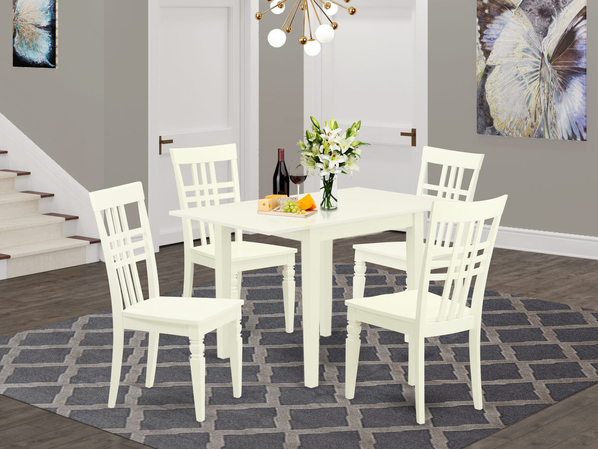 NDLG5-LY6-R Dining Set 5 Pieces with Leaf Table and 4 Stylish Chairs, 30x48, Linen White Finish