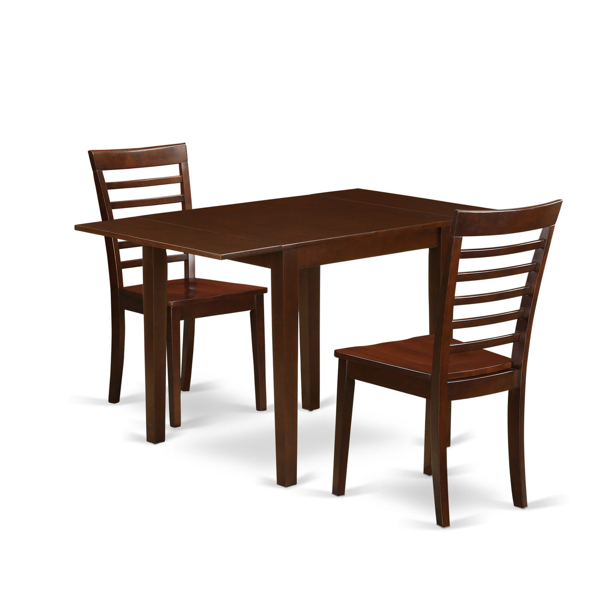 NDML3-63M-C 3 Piece Compact Dining Set Mahogany Dropleaf Table with 2 Chairs, 30x48 for Cozy Spaces