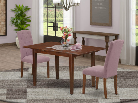 NOCE3-EIT-EK 3-Piece Dining Ensemble with Expanding Rectangle Table and Twin Linen Chairs in Elegant Mahogany Finish, 32x54 Inches
