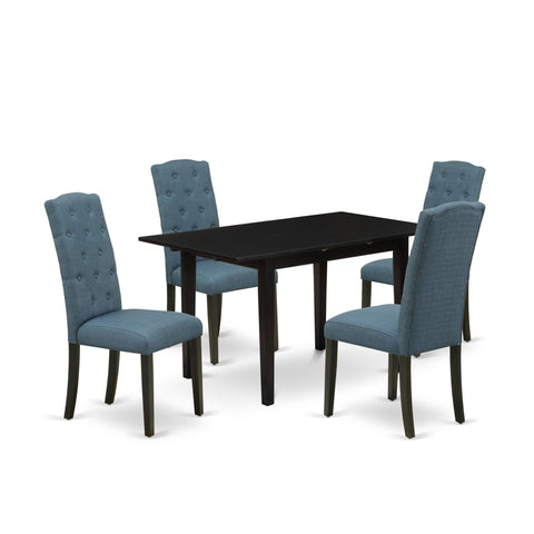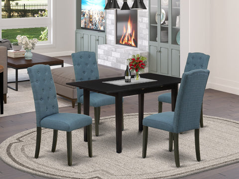 NOCE5-B9E-CS 5-Piece Dining Set with Extension Table & 4 Blue Upholstered Chairs for Kitchens