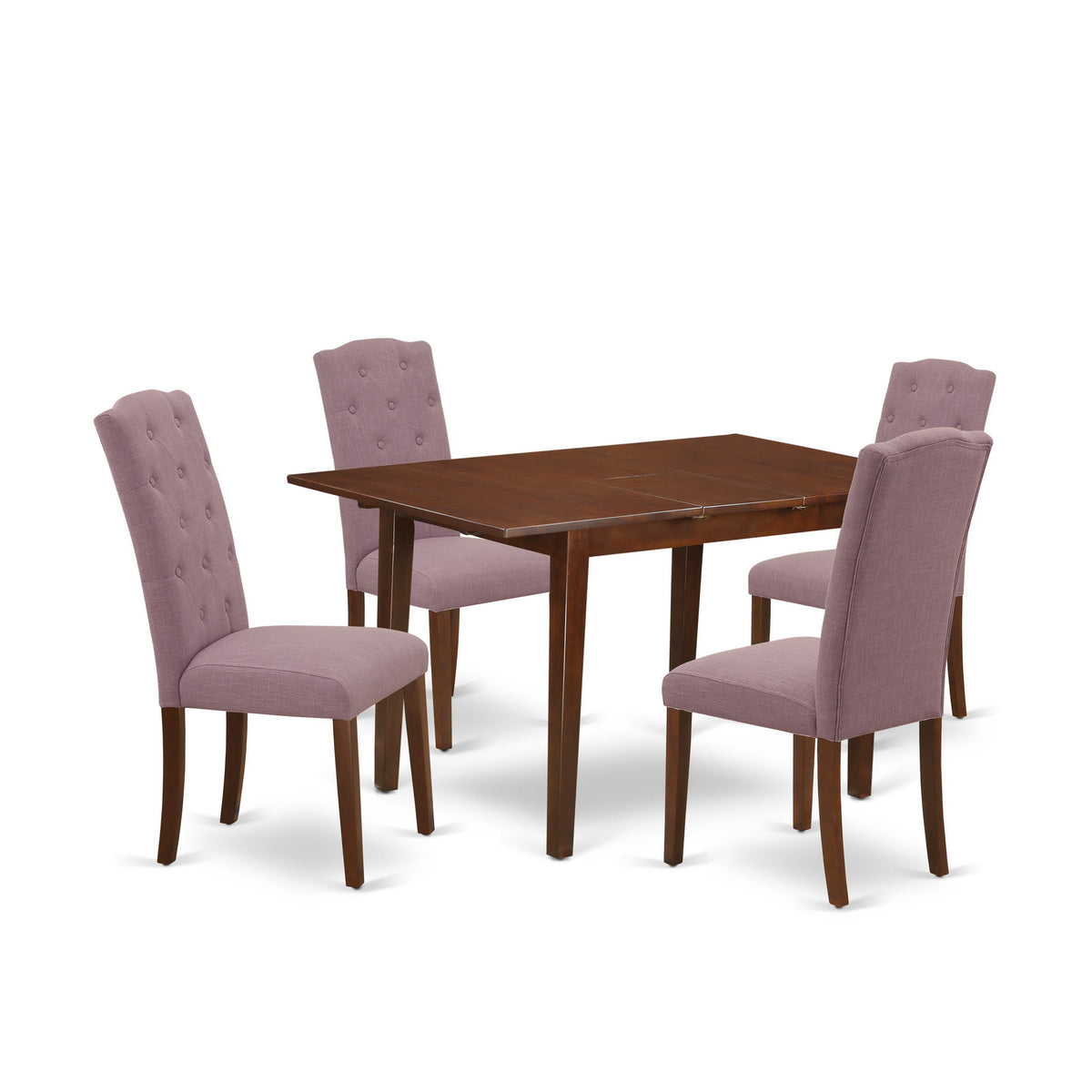 NOCE5-F67-3K 5-Piece Dining Set with Rectangle Table & 4 Upholstered Chairs, Mahogany Finish