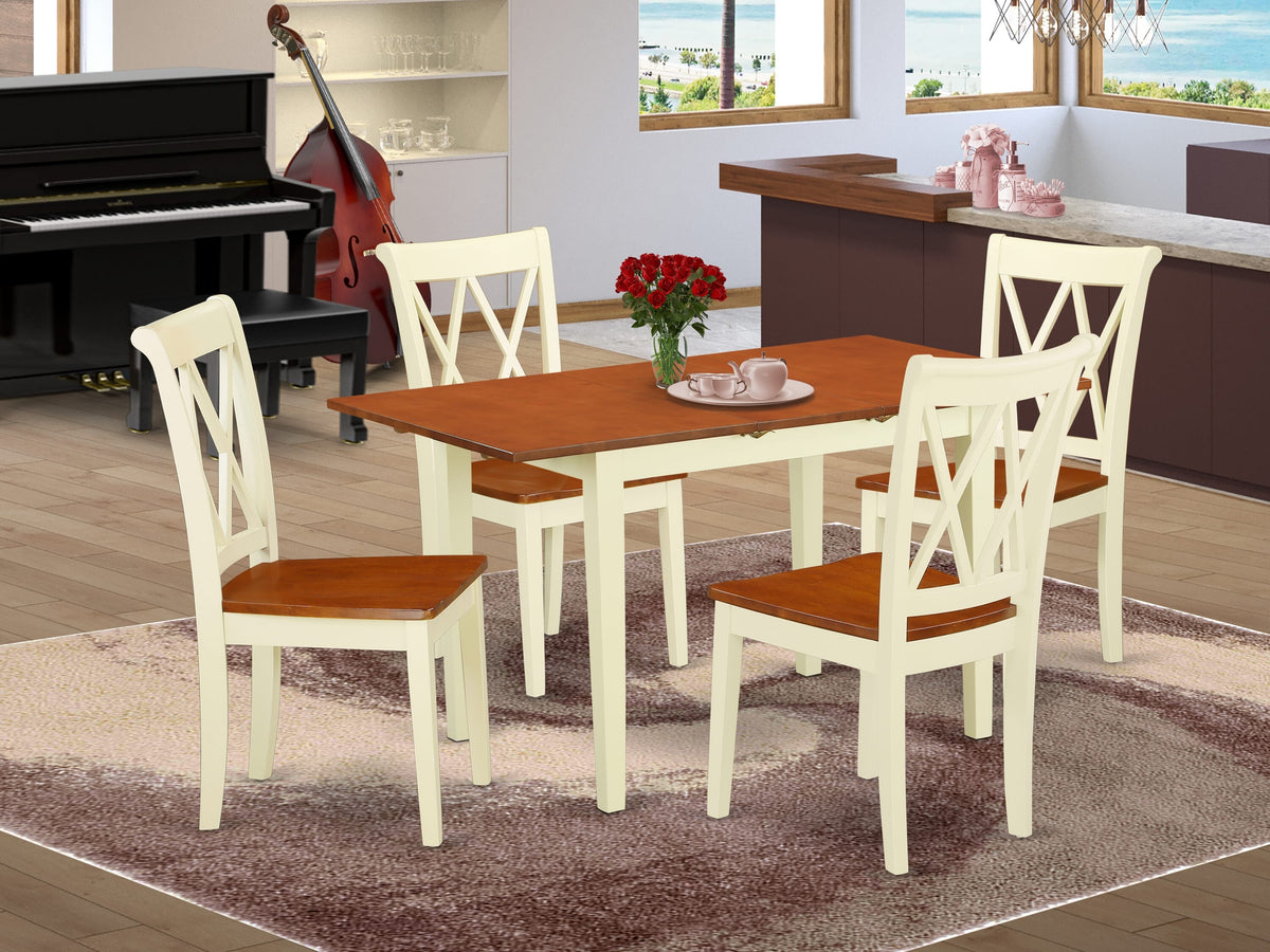 NOCL5-9D2-0 5-Piece Dining Ensemble with Expandable Leaf and Quartet of Comfort Chairs, Buttermilk & Cherry