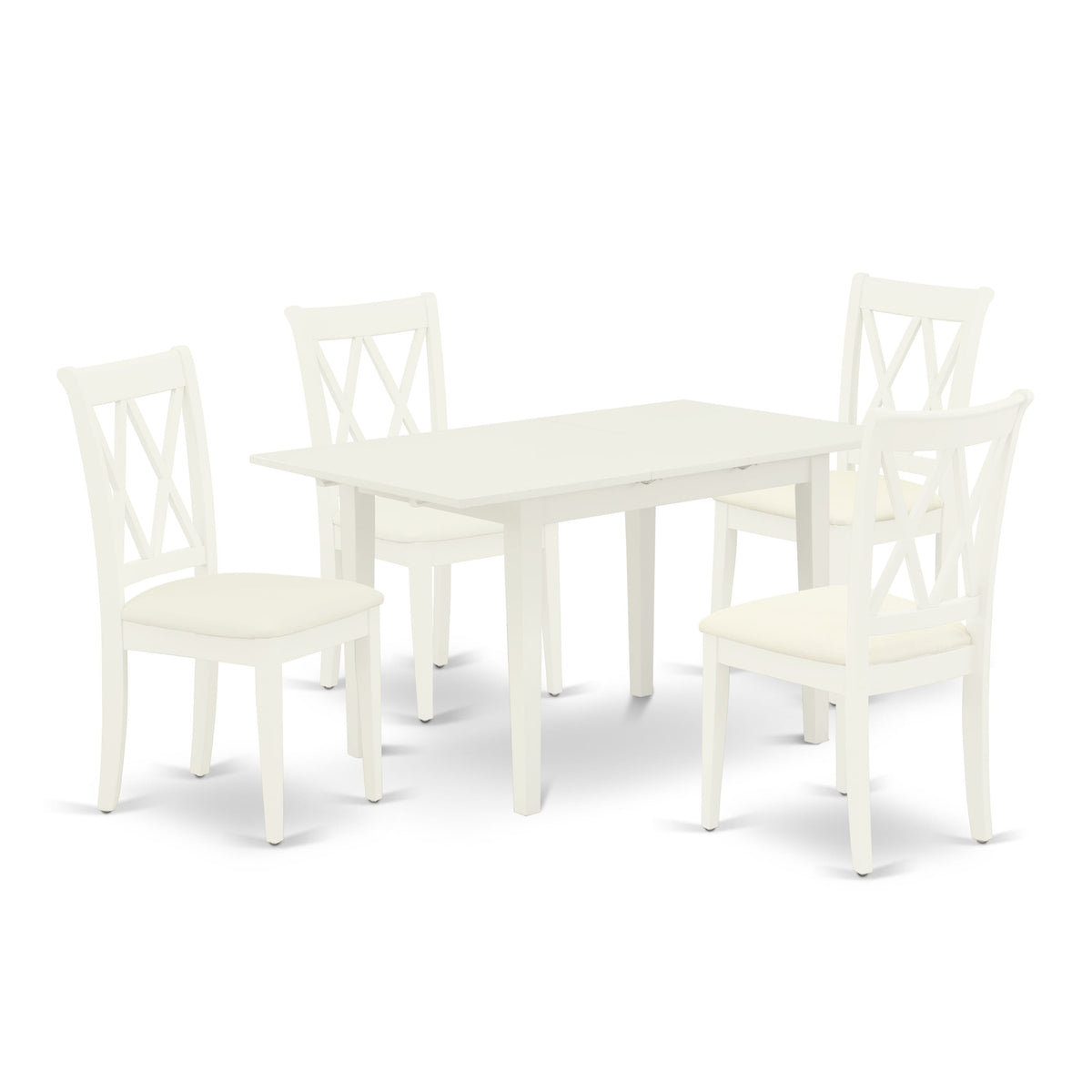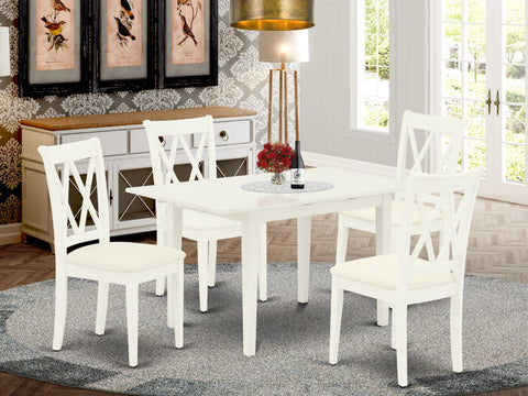 NOCL5-619-K 5 Piece Dining Set with Rectangular Table, Butterfly Leaf, and Linen Upholstery Chairs in White