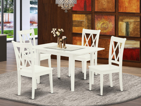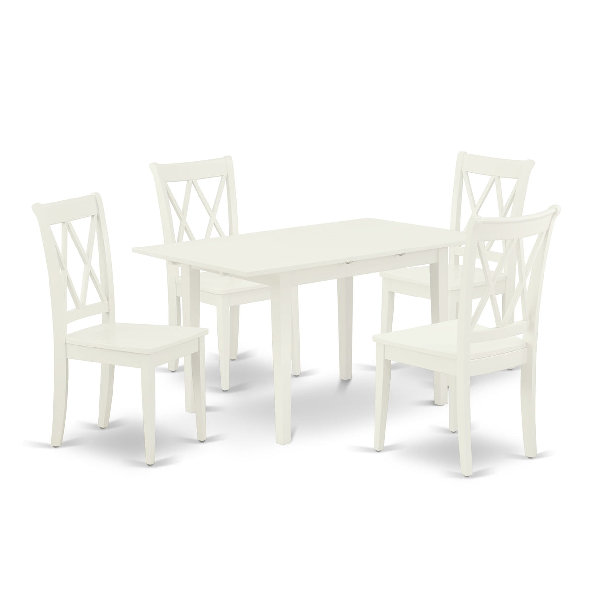 NOCL5-9EW-9 5 Piece Dining Ensemble Featuring Expanding Table & 4 Wood Seat Chairs, Linen White Finish, 32x54 In.