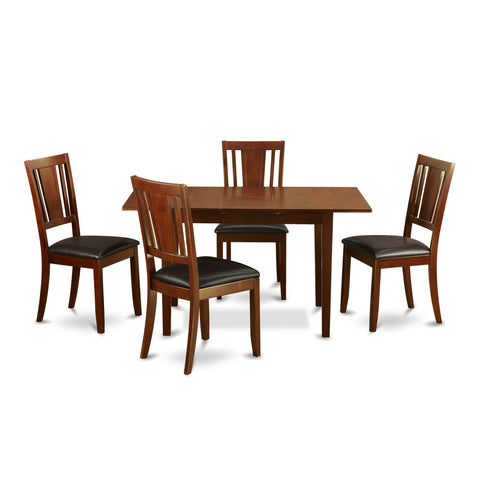 NODU5-L7Y-PM 5-Piece Rectangular Dining Table Set with 4 Leather Chairs and Expandable Mahogany Top