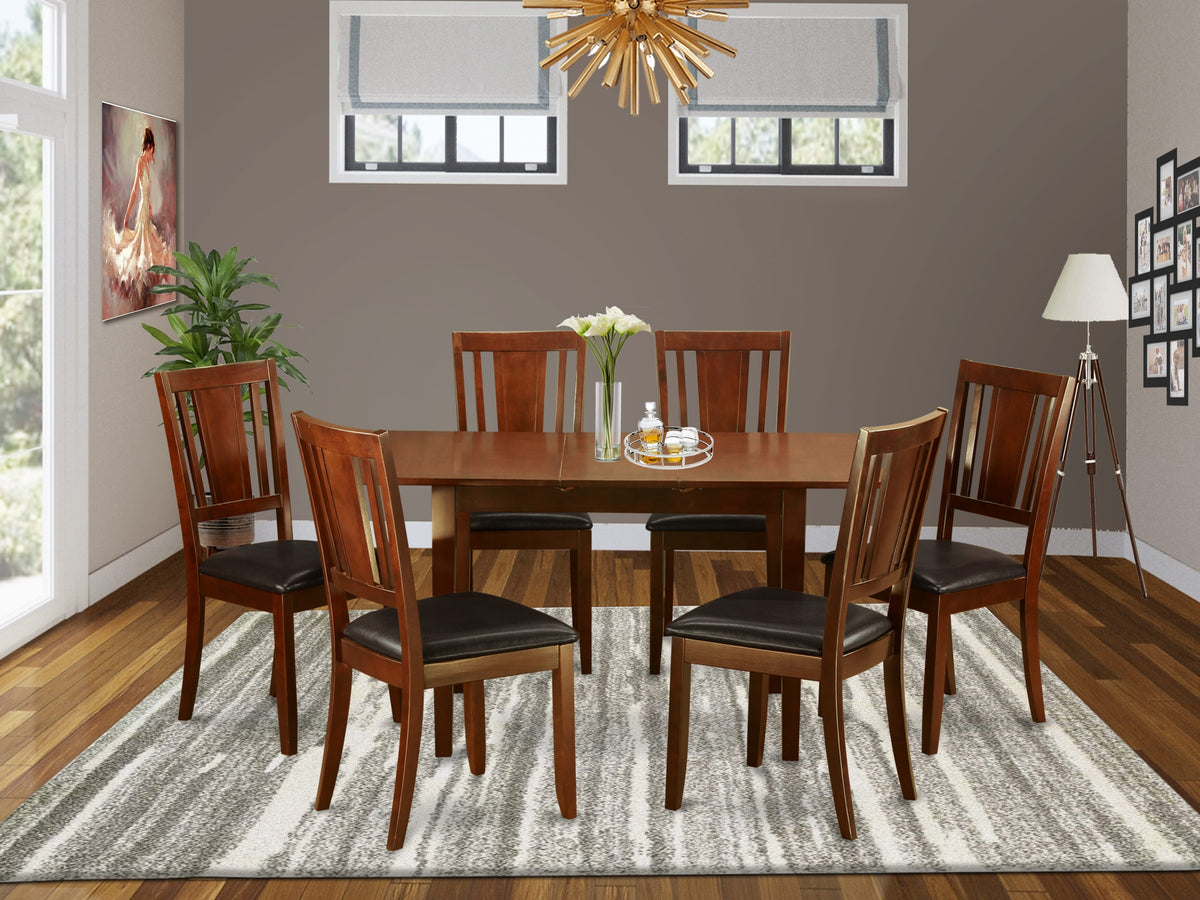 NODU7-RDF-0T 7-Piece Mahogany Dining Set Rectangular Table with Butterfly Extension & 6 Faux Leather Chairs