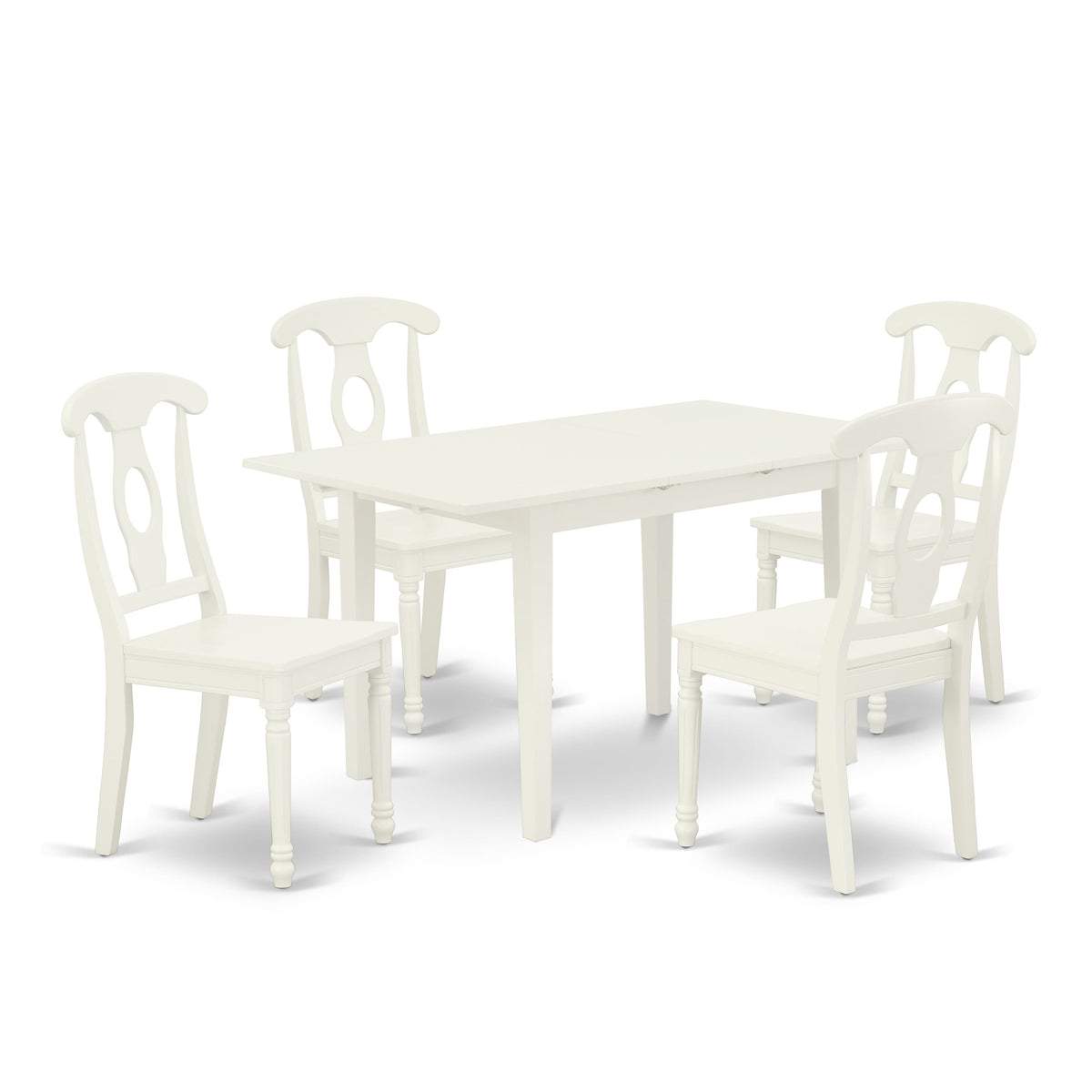 NOKE5-HPU-M 5 Piece Dining Ensemble with Rectangular Table and Extension Leaf, Plus Four Chairs in Elegant Linen White Finish