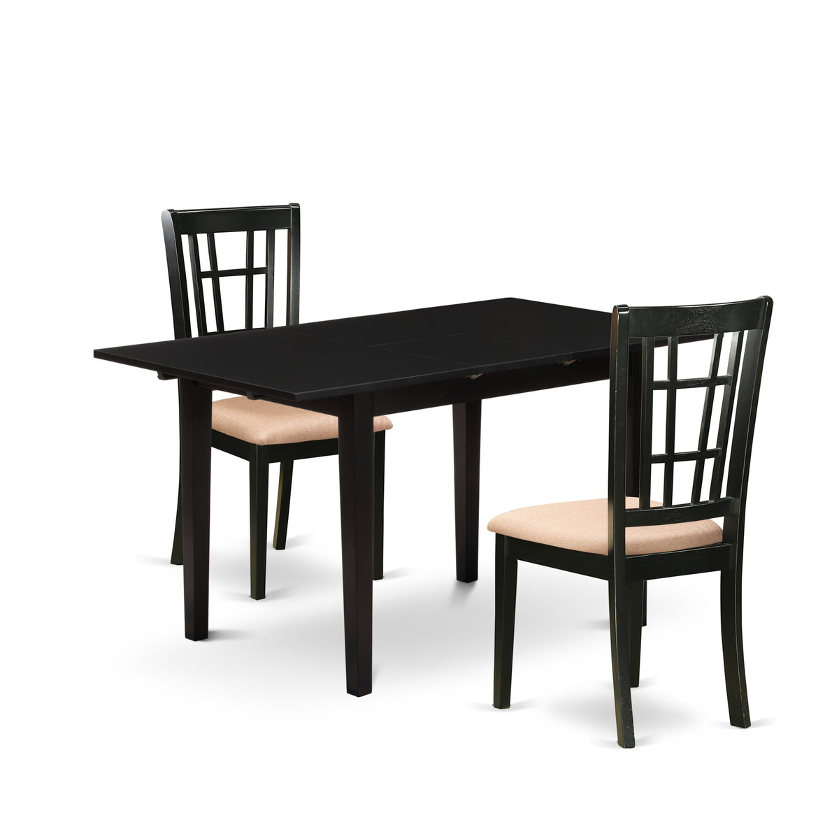 Its modern dinette set consists of 2 interesting wooden dining chairs and a remarkable 4 legs small dining table. The dining room table set gives a Black solid wood small rectangular dining table and a fantastic black dining chair that will increase the elegance of your dining area. This dining table is manufactured from high-quality rubber wood. These modern dining chairs have been created from good quality woods that can Endurance to 300lbs of weight. This kitchen dinette set is colored with a high-quality Black finish. You can clean this kitchen set simply with any furniture clearance. This mid century dining table set assembles easily because of its simple design. You can put together this wood dining table set from one place to another easily. The wood dining table set is one of the most important pieces of furniture in your house. It not only becomes the place to eat meals, but it's where you end up working on vegetable cuts and spending time with family and friends. You can also use it for casual home parties. That's why it's important to find a dining room table set that fits your personality and uses the space wisely. The options are endless, so it's important to pick what works best for you. If you're looking to bring a contemporary look to your kitchen or dining room, this rectangular dining table set might be a perfect choice. Bring a rustic, fashionable look to your dining area with this kitchen dinette set that seat 2 people around the dinette table. Just because you have a small area or for your rectangle dining table doesn't mean you have to give up on quality or look. Keep enjoying with East West furniture!