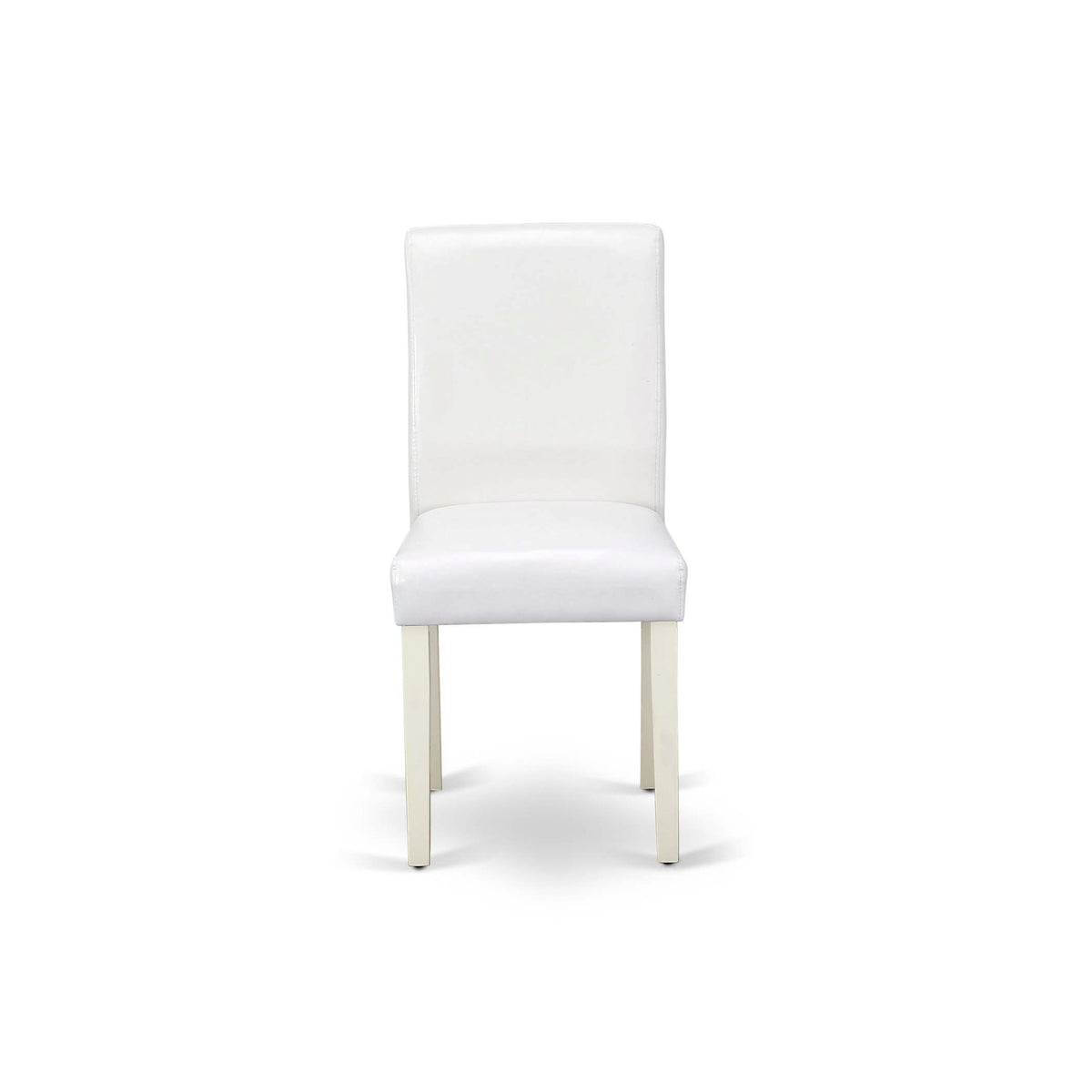 The luxurious dining set provides a distinctive Linen White finish well-fitted to any sort of home decoration style. The fresh and clean lines dominate the cutting-edge design of the square small dining table of this valuable kitchen Set. To complement the dining room table's square beveled tabletop, The Linen White finish gives you the Glimmer and shadows on the small kitchen table's legs with various contours and ridges for an antique dining room table set. 100% solid wood from table top to table legs. No heat treated pressured wood like MDF, particle board or veneer top was fabricated. This simple but charming Parson chair will add ambiance and style to your dining room. A contemporary twist on a classic design, this eye-catching design will liven up any look. The traditional Parson gives this chair a touch of familiar charm, while the PU leather-white color and clean-lined design elevate this chair with a modern flair. Replacing the old dining set with this one, you can effortlessly refresh your dining space. The frame of the Dinette chairs is engineered to offer a great amount of comfort to your spine and thus reduce the chances of back pain. The standard shape, size and design make the dining area significantly attractive. This budget friendly, Durable and comfortable dining set can be a good choice for a great dining experience with family and friends.