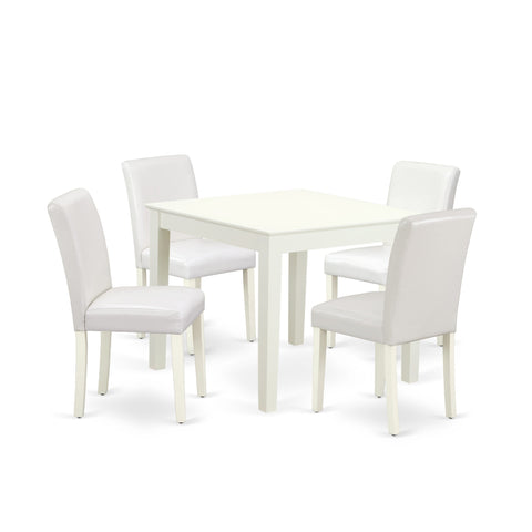 OXAB5-UHX-01 5-Piece Square Table with 4 White Faux Leather Chairs for Dining, 36x36, Modern Linen White Set