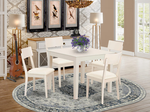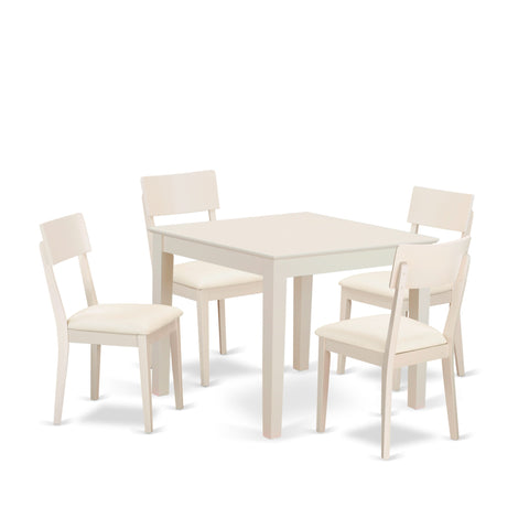 OXAD5-1V9-UP 5-Piece Breakfast Nook Bundle 4 Leatherette Seats & Square Table, Pure White 36x36