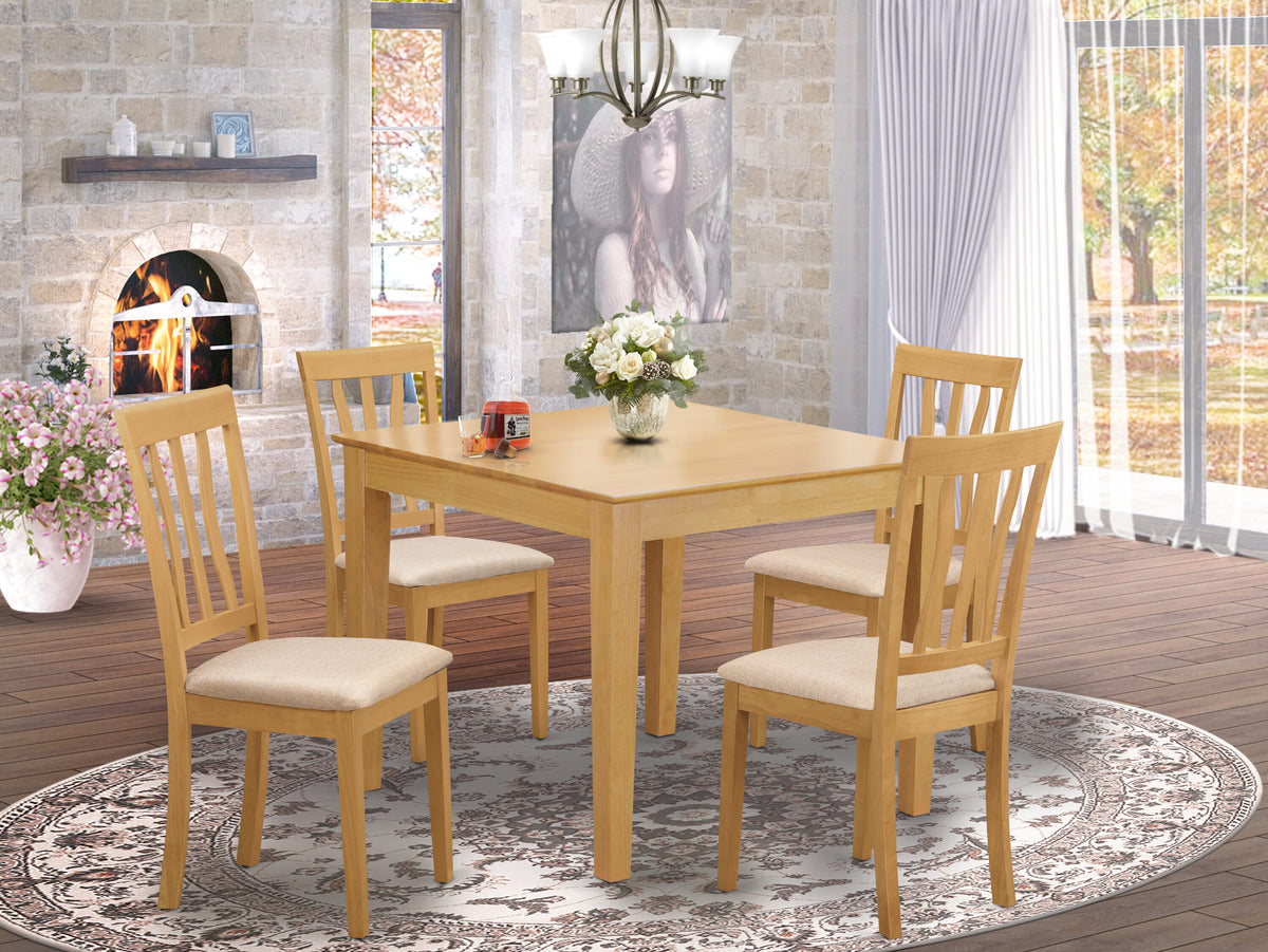 OXAN5-CN9-Q 5 Piece Dining Set Square Table & 4 Upholstered Chairs for Small Spaces, 36-Inch, Oak Finish