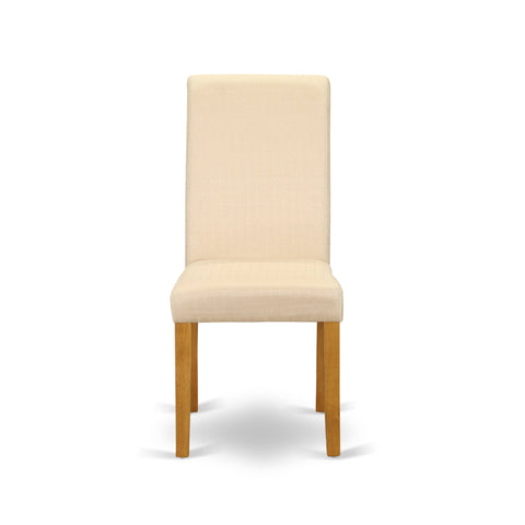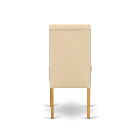This distinct dining set comes with a proportioned small square table and four parson chairs. The table provides an elegant smooth Oak finish well-fitted to any sort of home decoration style. The fresh and clean lines dominate the cutting-edge design of the square small kitchen table of this valuable kitchen table set. The barry upholstered dining chair is elegant & classic in design, comfortable & spacious to seat, and serves the best of its purpose. 60% Cotton, 40% Polyester Linen fabric cushion material is durable, easy to clean, and neutral in color to match any decor. The roll back design parson chair frame is made of oak color sturdy hardwood materials which provide sound stability and functionality. This fashionable dining set provides overall reliability and a sense of durability thus perfect for hosting individuals of any age group.