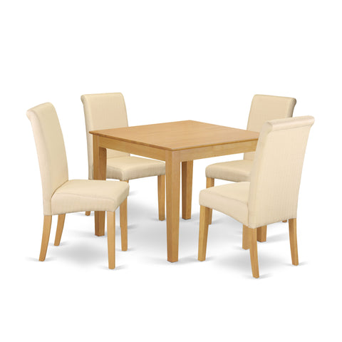 OXBA5-U22-ZY 5-Piece Table Set for 4 with Square Oak Table & Light Beige Chairs