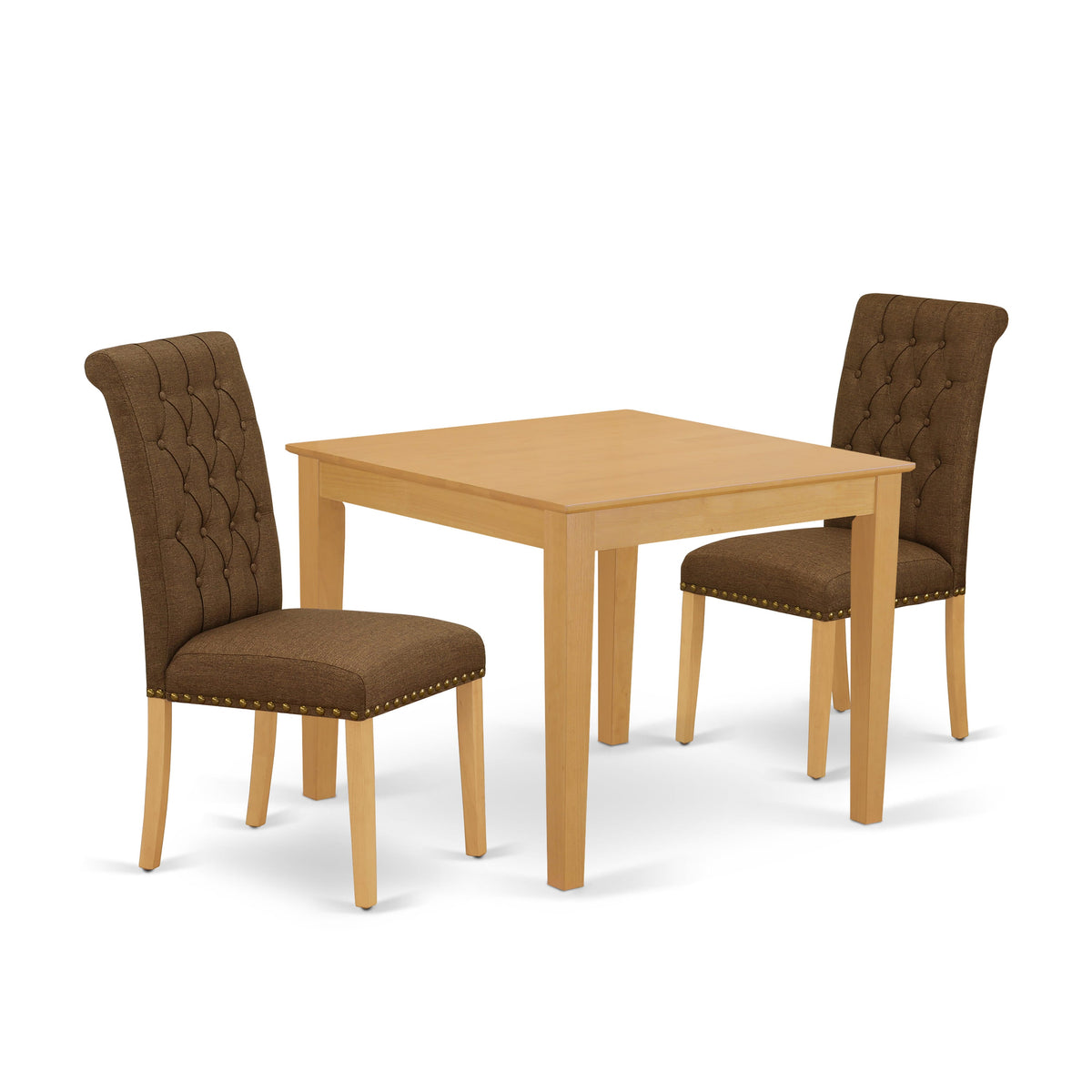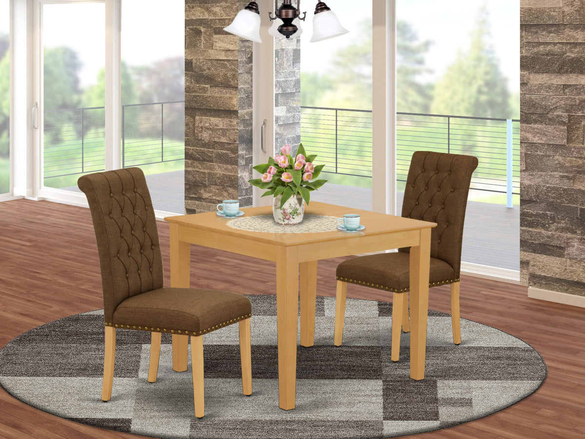 OXBR3-B05-MP Stylish 3-Piece Set with Oak Square Dining Table and Brown Chairs for Cozy Corners