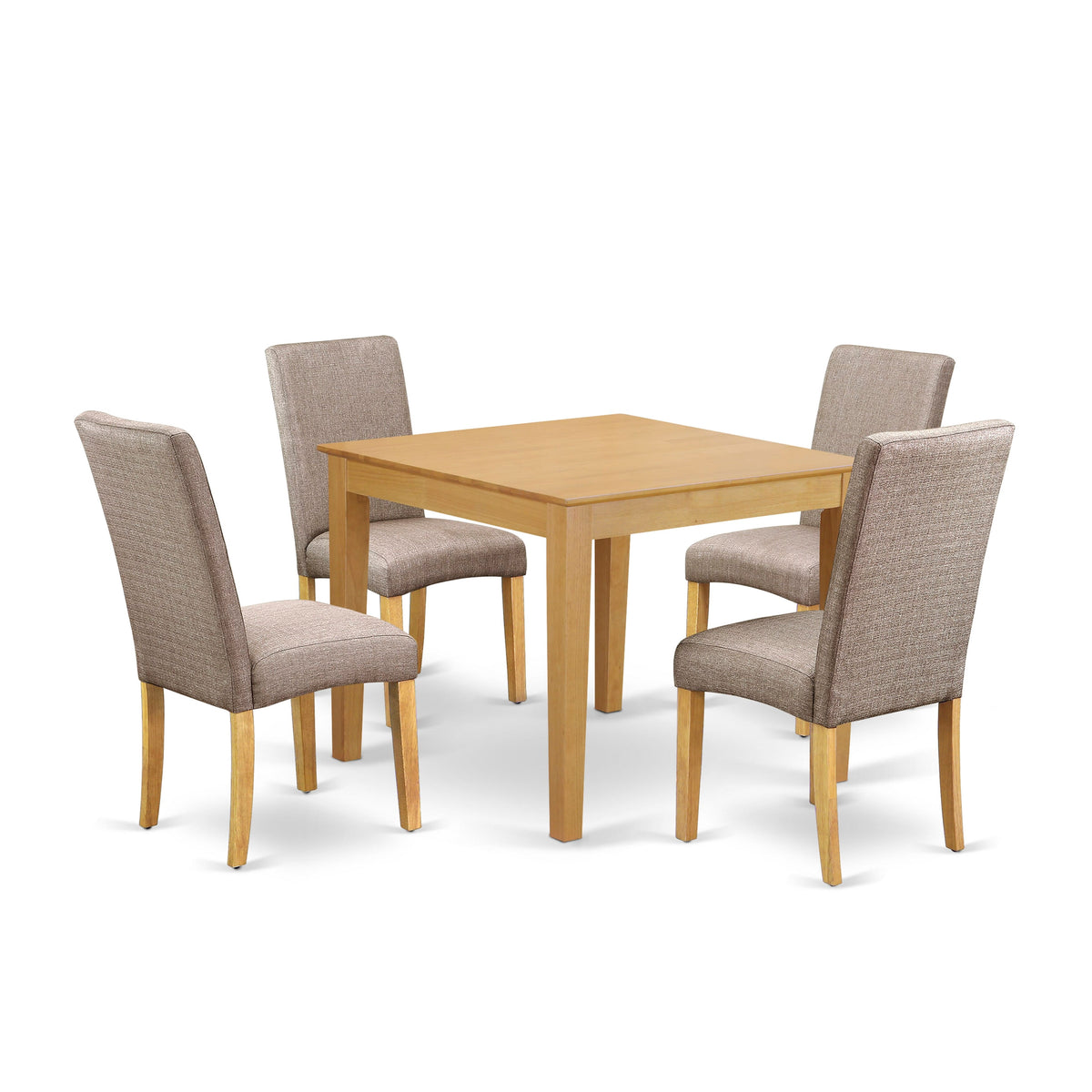 OXDR5-ENL-QA Dining Set for Four with Oak Table and Linen Chairs, Perfect for Cozy Kitchens