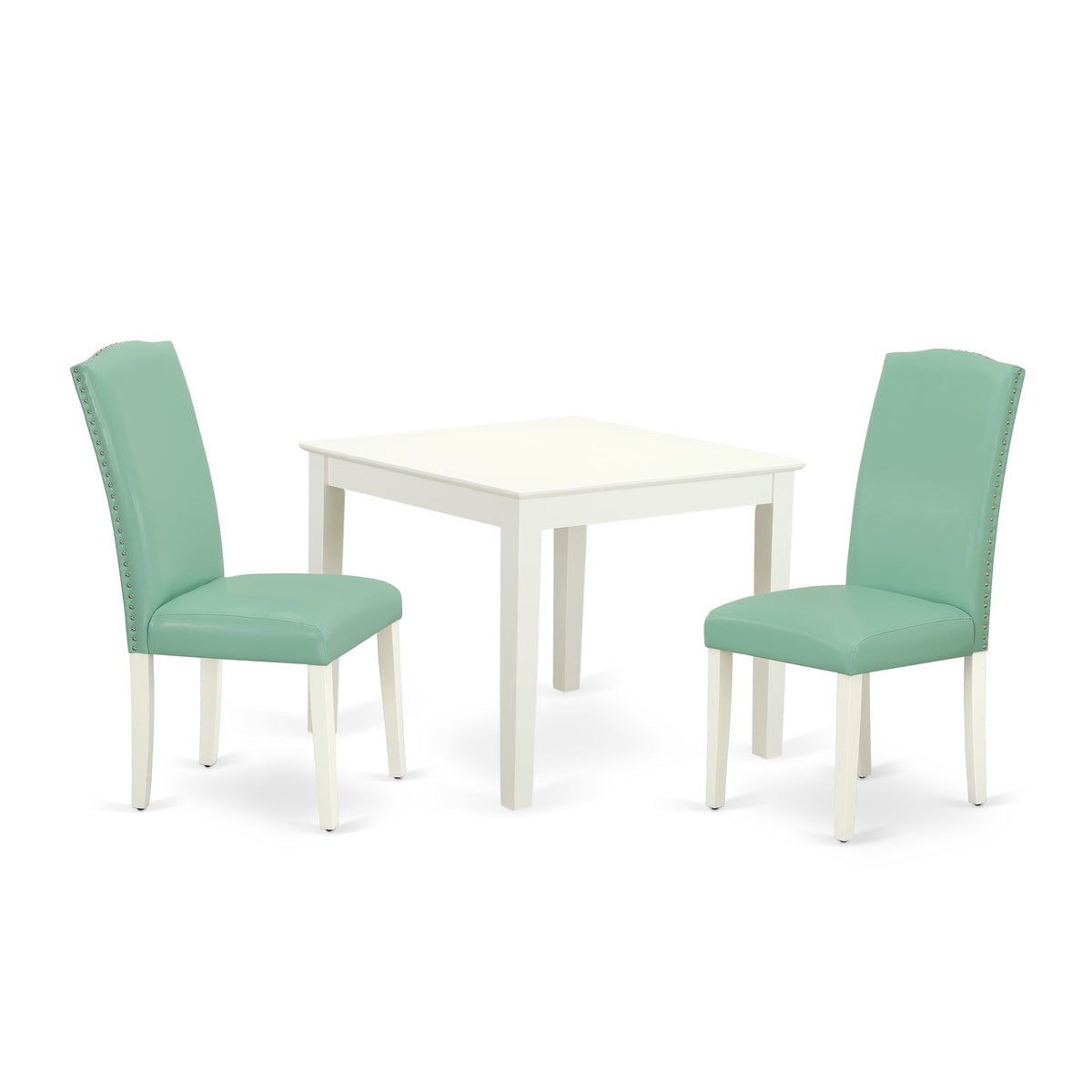 OXEN3-MUP-BM 3-Piece Compact Dining Set with Square Table and Faux Leather Chairs, 36x36, White