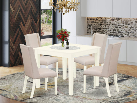 OXFL5-0F5-Z6 Elegant 5-Piece Dining Set with Cream Linen Parson Chairs and Square Table for Cozy Meals