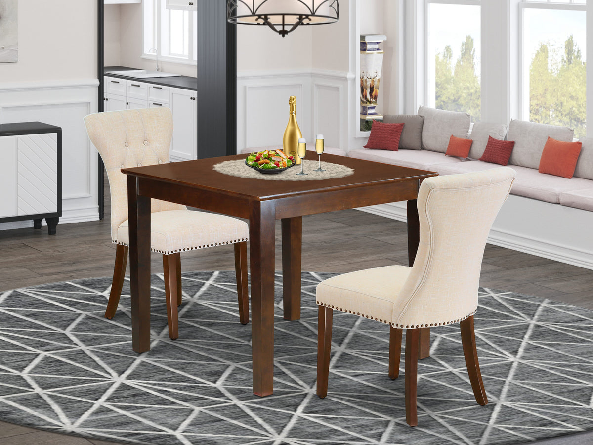 OXGA3-7SX-1S 3-Piece Dining Set with Square Mahogany Table & 2 Beige Upholstered Chairs, 36x36 inches