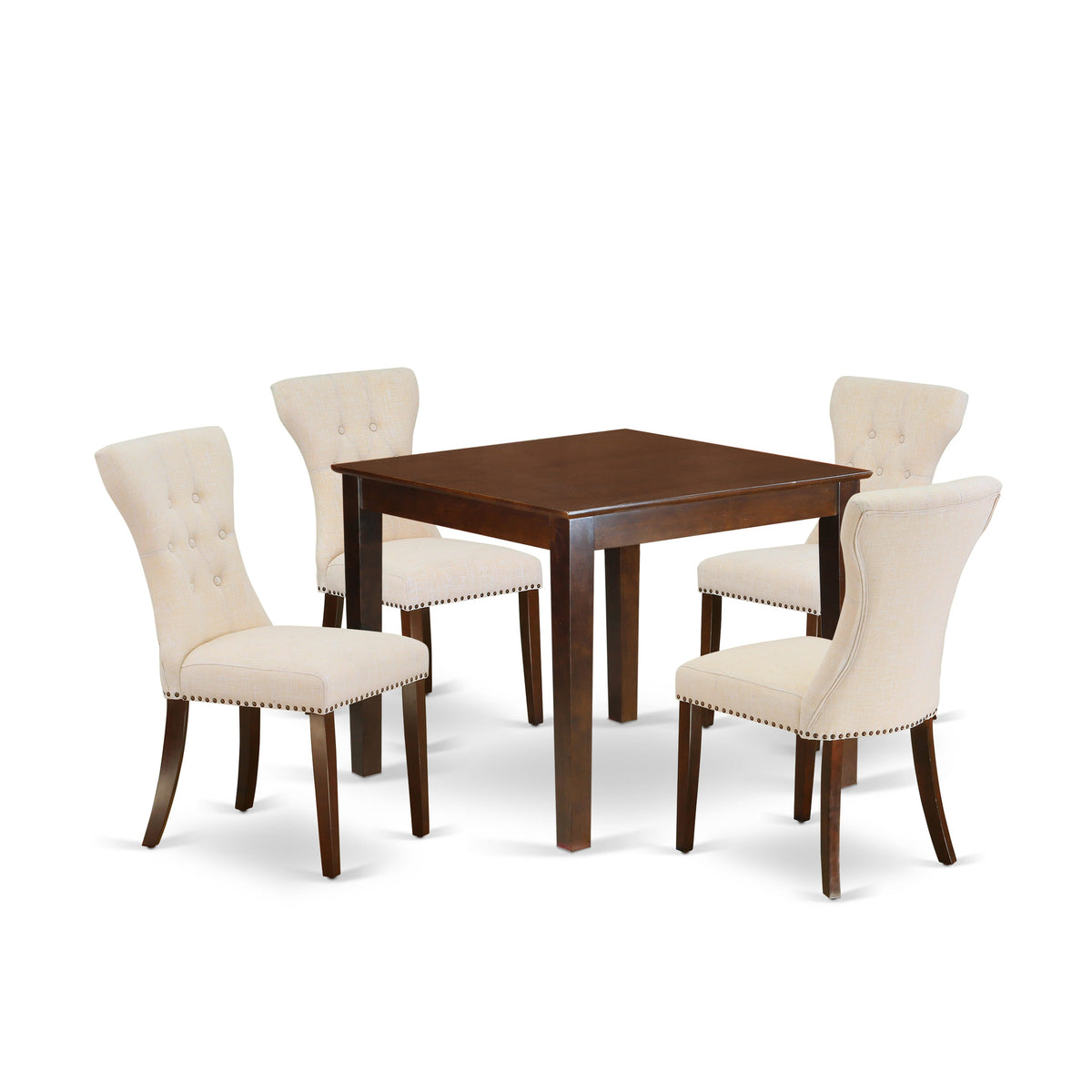 OXGA5-65Z-1M 5-Piece Dining Ensemble for Four with Square Table and Linen Chairs in Warm Mahogany