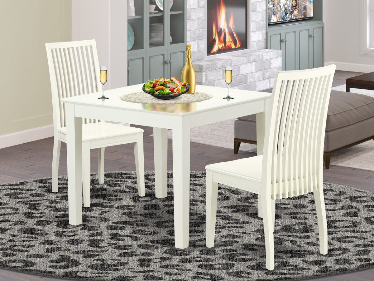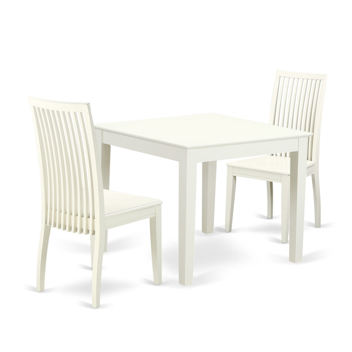 OXIP3-WPF-R Space-Saving 3-Piece Set Compact Dining Table with Two Chairs, Square 36 Table, Linen White