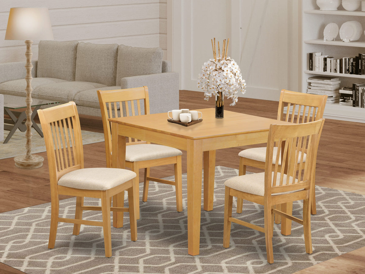 OXNO5-EU6-M 5-Piece Dining Ensemble with Square Table & 4 Upholstered Chairs, Oak Elegance, 36x36