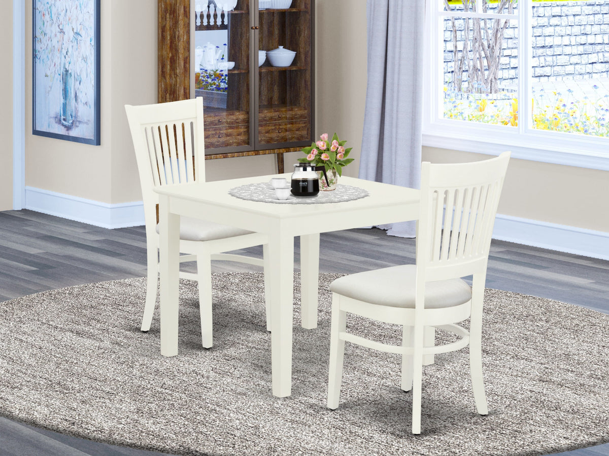 OXVA3-UJZ-D Elegant 3-Piece Dining Set with Square Table & Upholstered Chairs, 36 Linen White