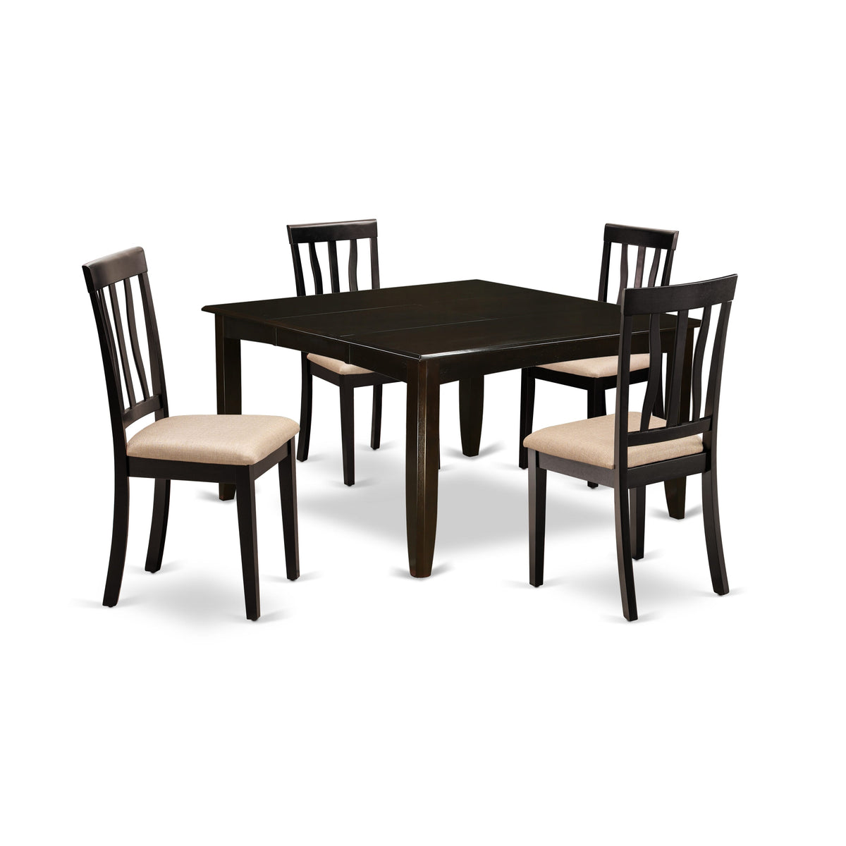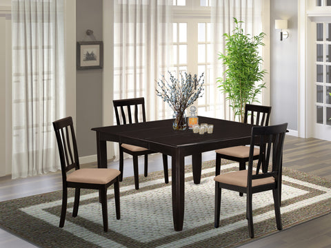 PFAN5-HGF-F 5-Piece Dining Ensemble with Expandable Square Table and Upholstered Chairs, 54x54 inch, Cappuccino Finish
