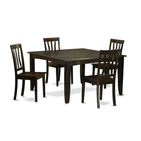 PFAN5-J97-K Elegant 5-Piece Modern Dining Ensemble With Extendable Square Table & Chairs in Rich Cappuccino Finish