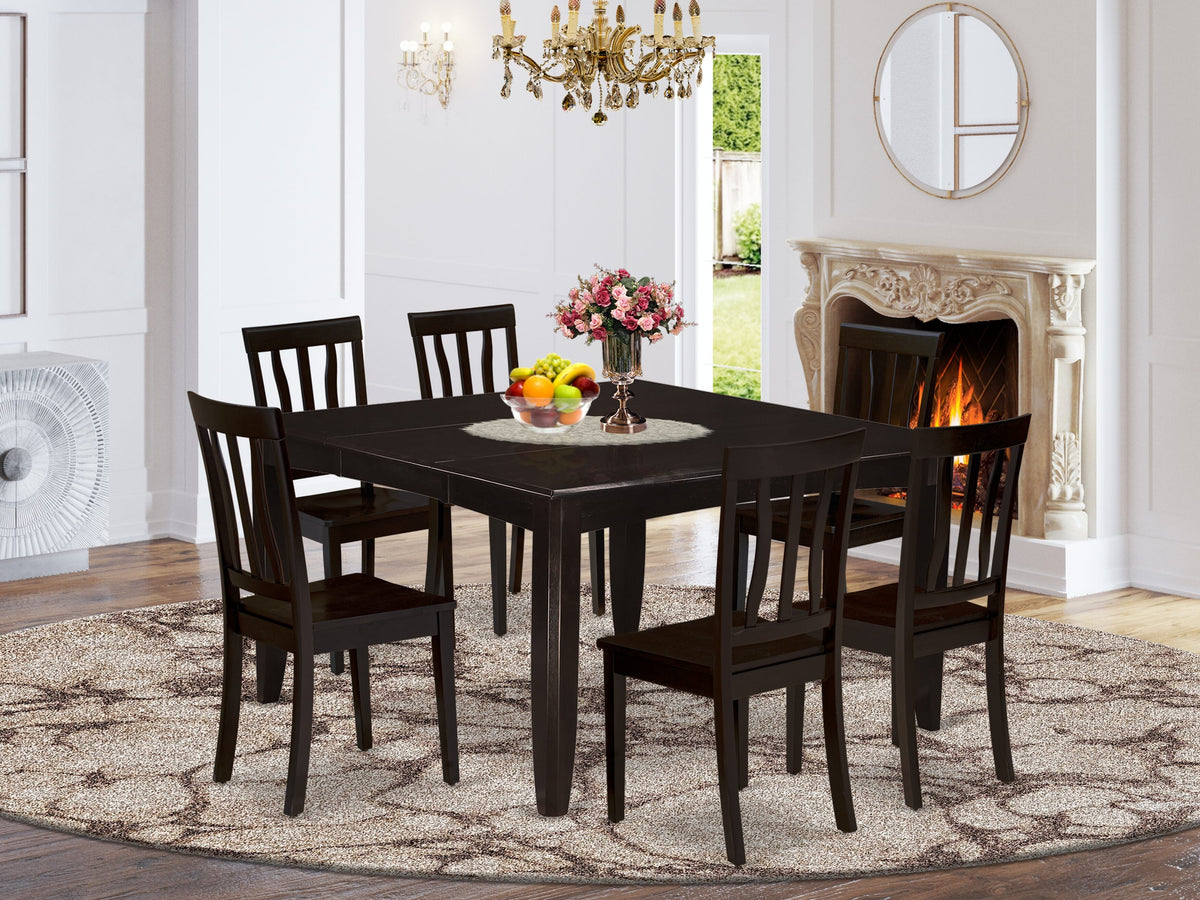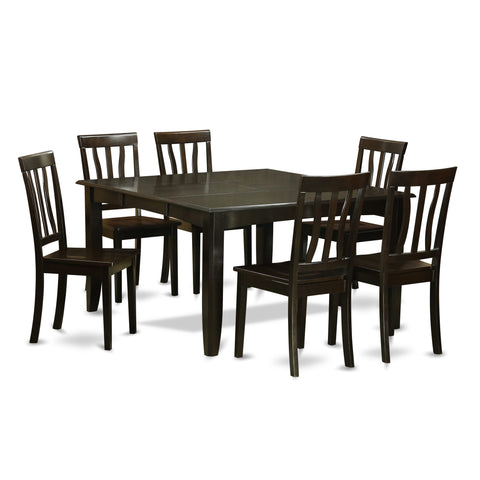 PFAN7-J6U-J Square Dining Table Set with Expandable Leaf and Six Seats, Cappuccino Finish, 54 Design