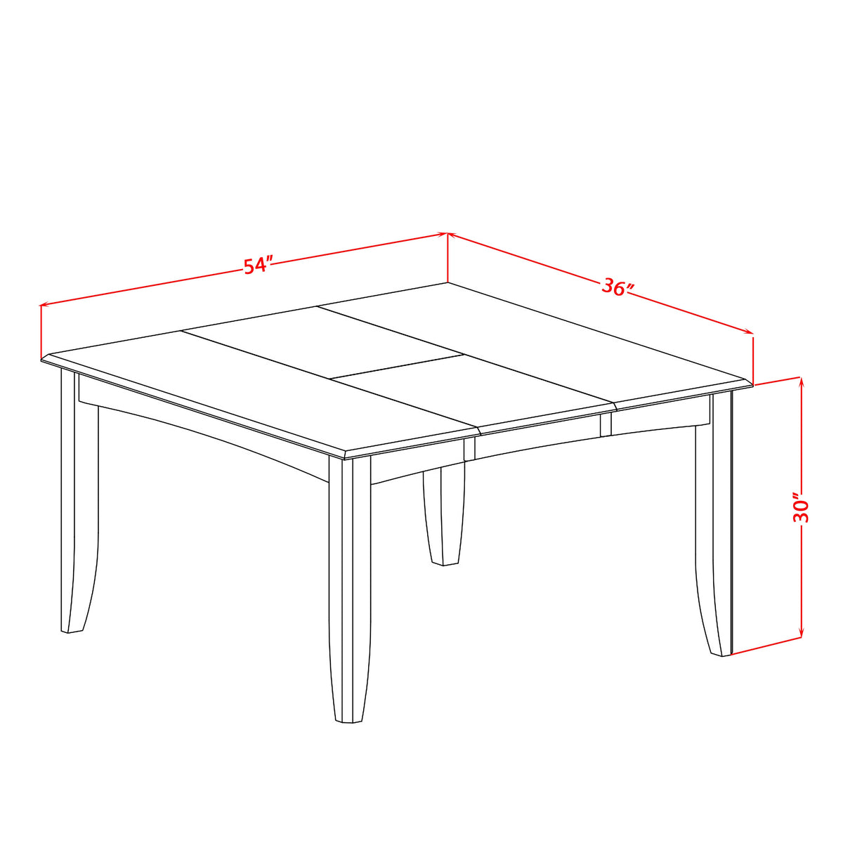 - Table Dimensions: Length: 54/36; Width: 54; Height: 30.
