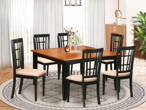 PFNI7-YXK-X 7-Piece Dining Ensemble with Extending Square Table and Upholstered Chairs in Black & Cherry, 54in
