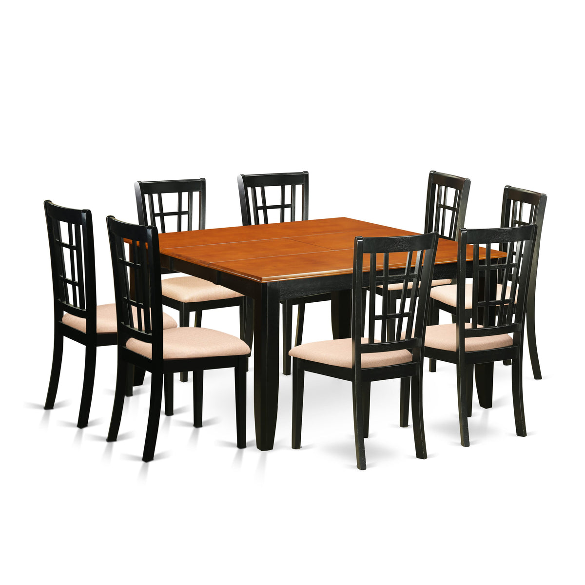 PFNI9-XIE-7 Nine-Piece Square Dining Ensemble with Butterfly Extension and Upholstered Seats, Black & Cherry