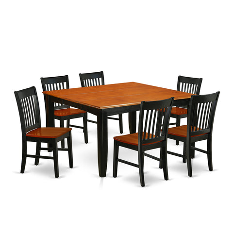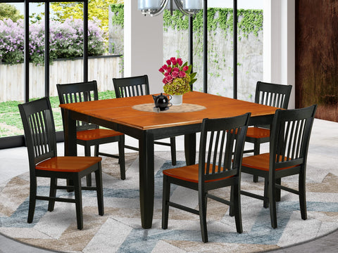 PFNO7-YQK-U 7-Piece Dining Ensemble with Square Extendable Table & 6 Chairs, Black & Cherry, 54x54 Inch