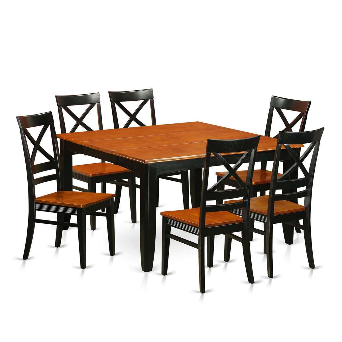 PFQU7-S1G-E Elegant 7-Piece Kitchen Dining Set with Butterfly Leaf Table and 6 Chairs, 54 Black & Cherry Wood