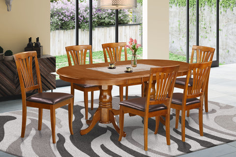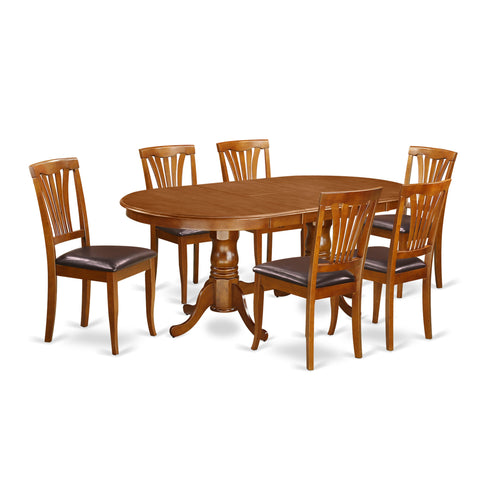 PLAV7-I1C-31 7-Piece Saddle Brown Dining Ensemble with Oval Table & Faux Leather Chairs, 42x78