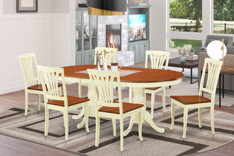 PLAV7-0H7-D 7 Piece Oval Dining Set with Leaf Extension & 6 Chairs for Rustic Charm, Buttermilk & Cherry Finish